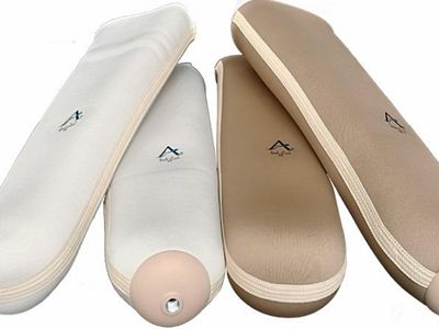 硅膠內(nèi)襯套的延展性,可以溫和柔軟的緊緊裹住肢體截?cái)嗵?,起到保護(hù)殘端皮膚組織的作用,防止了斷肢在假體腔內(nèi)的摩擦,降低乃至清除部分接觸壓力,給皮膚敏感區(qū)一個舒服的軟膠墊。因而,徒步時能夠顯著減輕肌膚表層受的摩擦不適,因?yàn)楣枘z墊把一些應(yīng)力從肌膚處傳送到硅膠內(nèi)襯套的外面,變?nèi)趿送刺酆蜌埗颂幖∧w損壞,這類柔韌度很好的硅膠內(nèi)襯套會使高位截肢者覺得十分舒服。