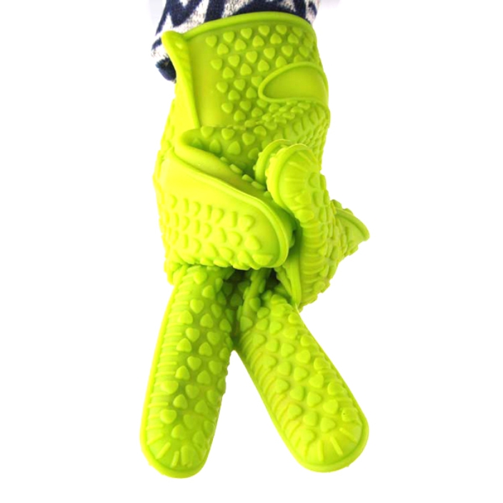 英文名sillcone glove,材質(zhì)是環(huán)保硅膠。區(qū)別于常規(guī)手套的手部保暖和勞動防護功效,硅膠手套作用主要定位在隔熱,防燙傷。適用于家庭廚房以及蛋糕烘焙行業(yè)。制造工藝為,油壓機高溫硫化成型。