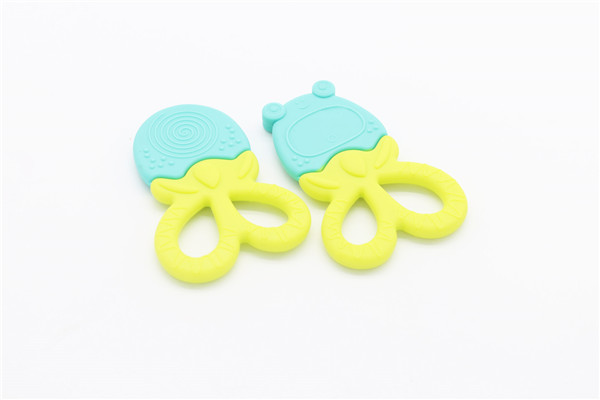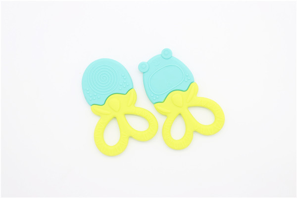 卡通青蛙硅膠牙齒矯正器簡稱硅膠牙膠,磨牙棒,此款牙膠主要采用雙色粘接成型工藝制作,有良好的生動性與立體感,讓嬰兒寶寶愛不釋手,材料安全環(huán)保,可放心與口腔身體皮膚接觸。